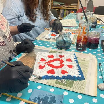 Creativity Calling CIC supports people in their lives, building connections and community through series’ of creative workshops and one to one activities. My work focuses on the process of creating, a piece of art arrives out of this process and whilst this final piece may represent many things, it is the process of creating that truly holds the power. I currently support, asylum seekers and refugees, the older people in our community, vulnerable women, people experiencing mental health conditions, young people and carers exploring painting, drawing, printmaking, textiles, ceramics and sculpture. I exhibit the art works in our online gallery and in the communities I work with.