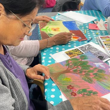 We offer Art based workshops to provide support for residents in a range of settings. Our sessions are welcoming, friendly and all inclusive, encouraging creativity for the joy of creating.